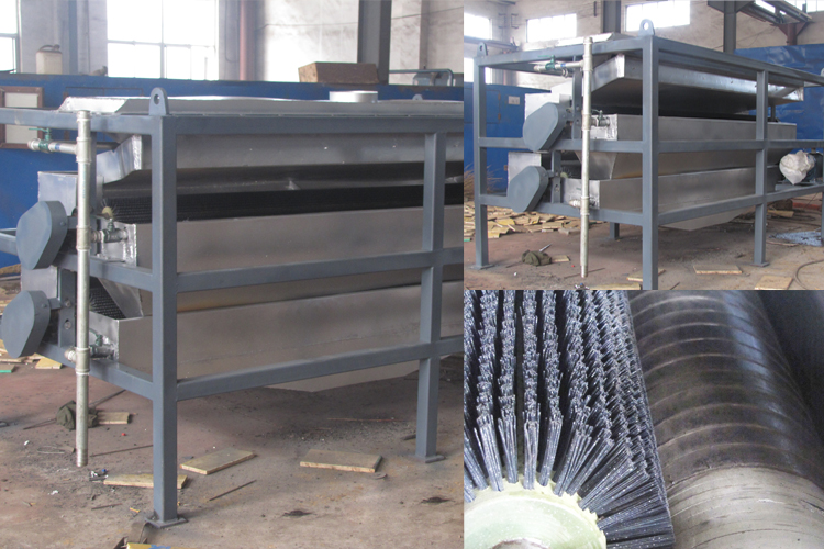 其原理為物料經料倉通過導料盤進入磁場區,磁性礦物被吸附在磁輥表麵旋轉到達精礦區,毛刷將吸附在磁輥表麵上的磁性礦刷脫,在高壓水的噴射下落到精礦鬥裏,部分未被吸附的磁性礦粒、非磁性礦粒和磁性較弱的礦粒進入到下一步再選。