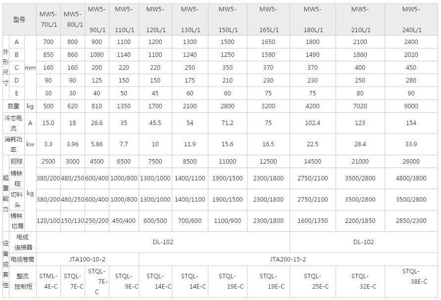 MW5型起重電磁鐵采用全密封結構,防塵、防潮性能良好。勵磁線圈經特殊工藝處理,絕緣材料耐熱等級達到c級,提高了線圈的電氣和機械性能,延長了使用壽命。安裝、維護簡便,運行可靠。適用於冶金、礦山、機械製造,交通運輸等行業吊運鋼鐵等磁性物料。